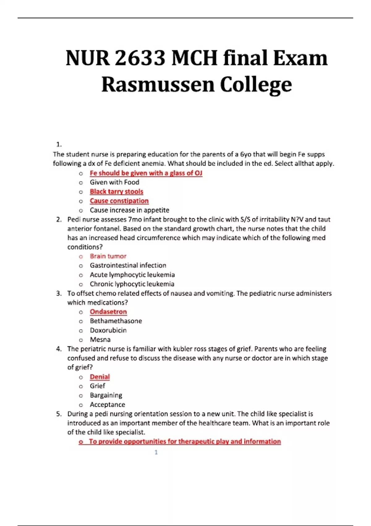NUR 2633 Maternal and Child Health, MCH final Exam Questions and correct answers (100% complete answers) already graded a+ | 100% satisfaction guarantee with complete solutions, all answers included (latest update) 2025/2026!!!