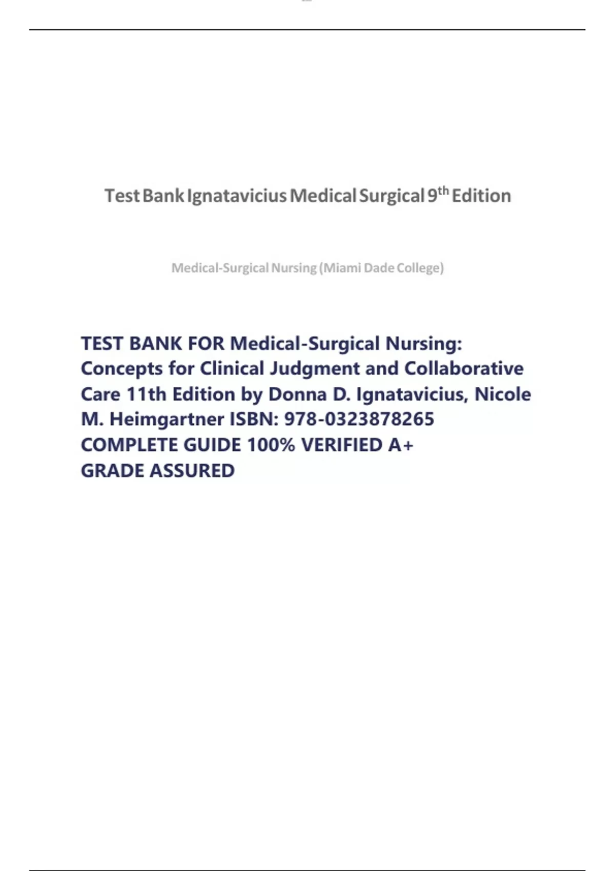 Test Bank Ignatavicius Medical Surgical 9th Edition