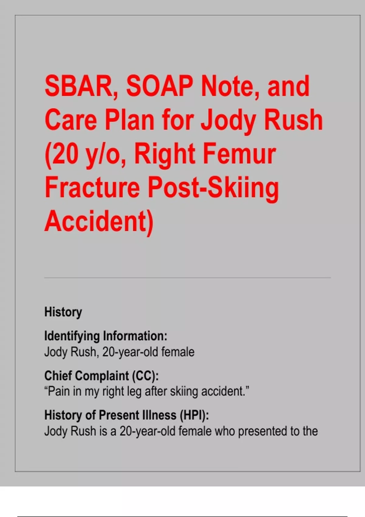 Jody Rush is a 20-year-old female who presented to the