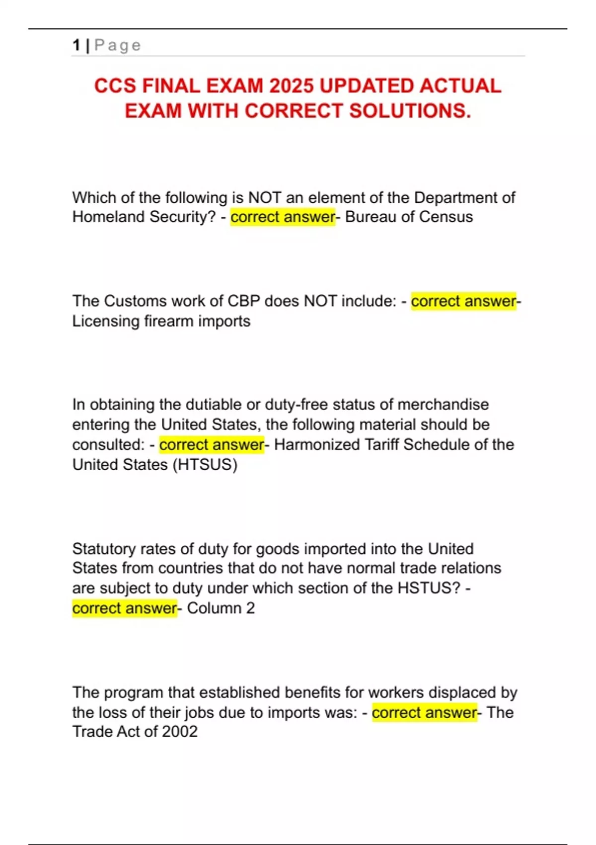 CCS FINAL EXAM 2025 UPDATED ACTUAL