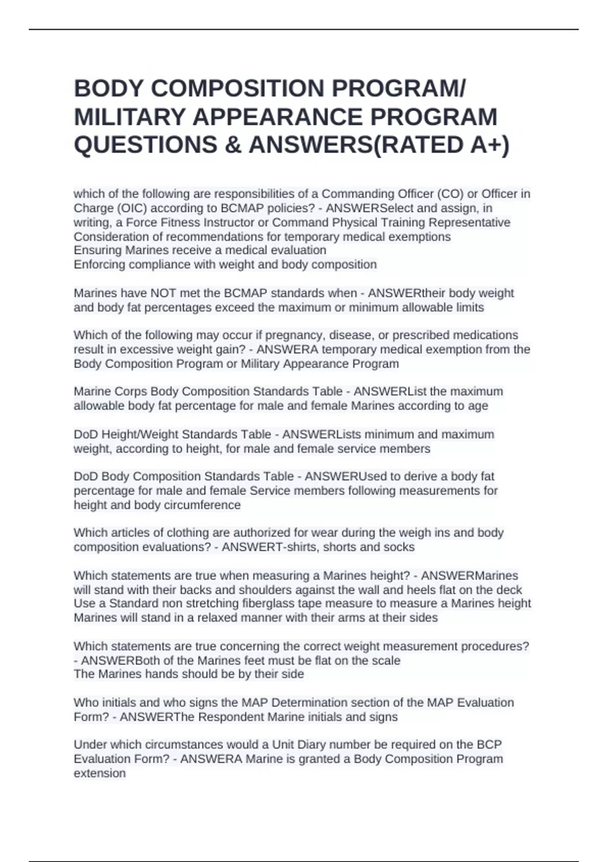 Marines have NOT met the BCMAP standards when - ANSWERtheir body weight