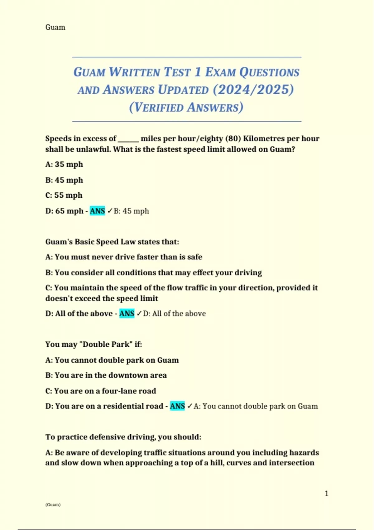 GUAM WRITTEN TEST 1 EXAM QUESTIONS