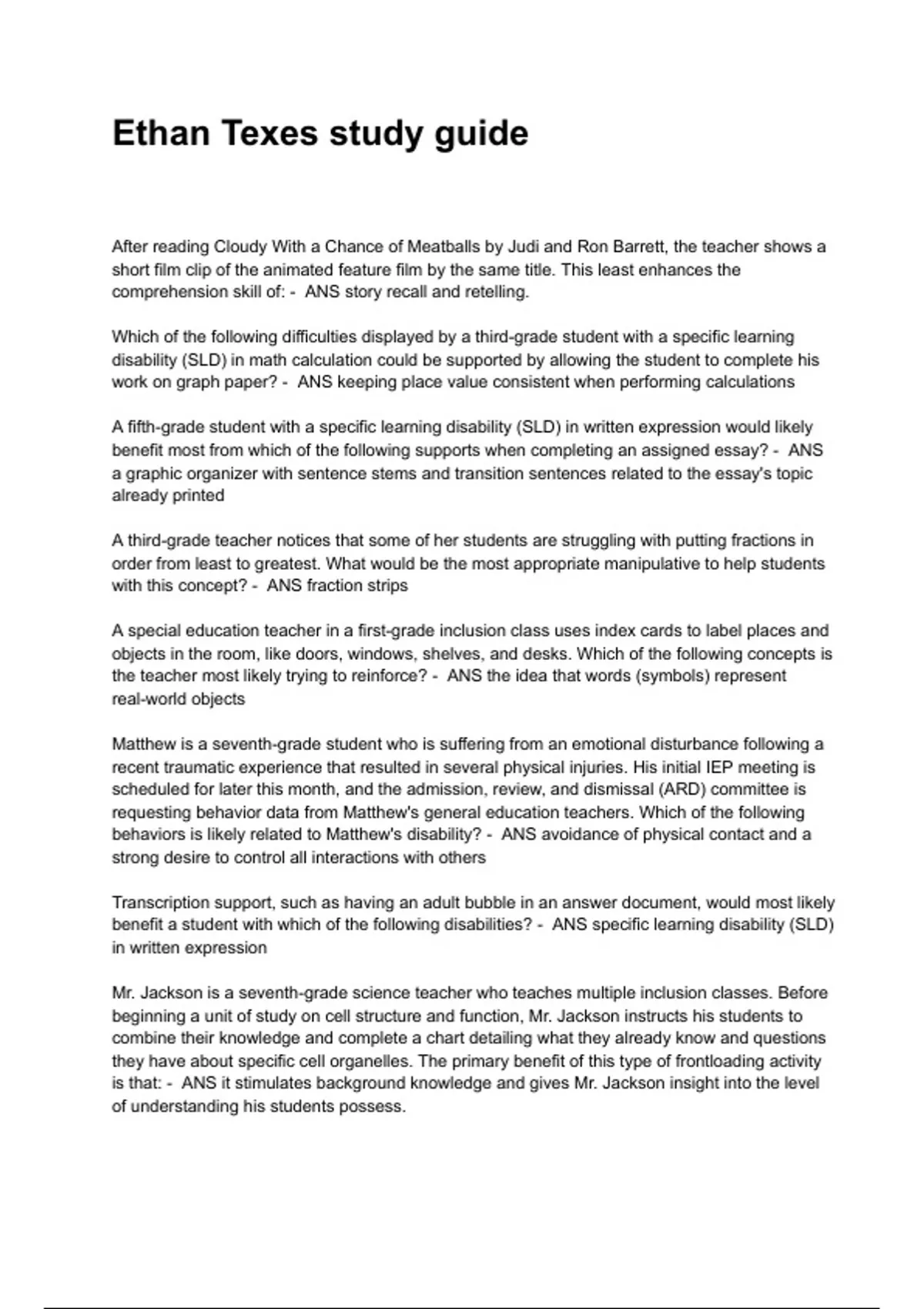 benefit a student with which of the following disabilities? - ANS specific learning disability (SLD)