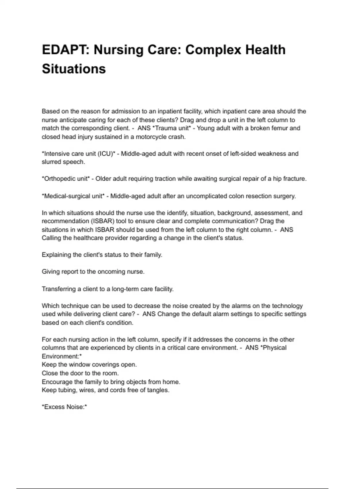 nurse complete the listed actions? Place the actions in order from first to last. - ANS 1. Assess