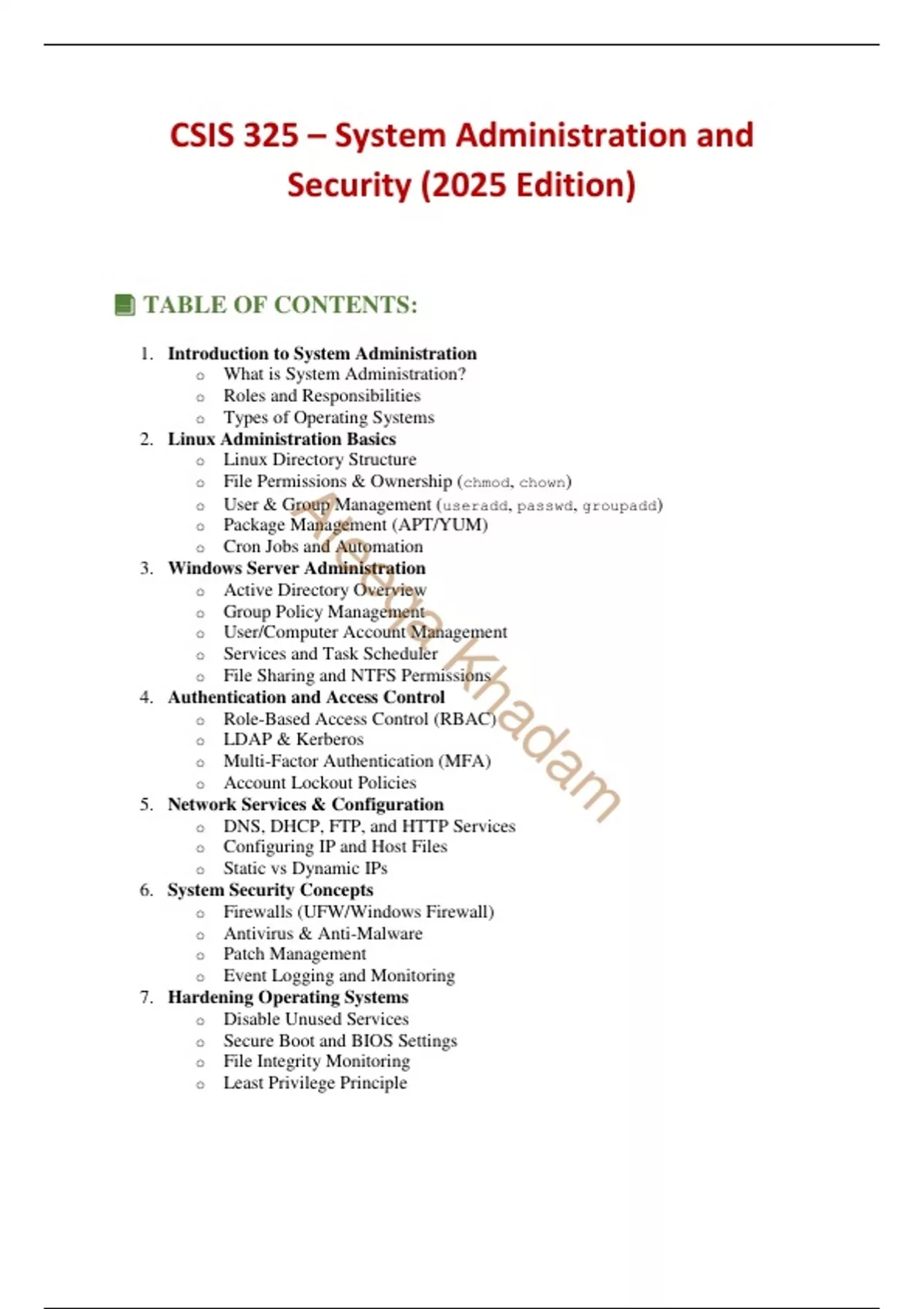 Summary CSIS 325 – System Administration and Security Complete Study Guide + Practice MCQs (2025 Edition)