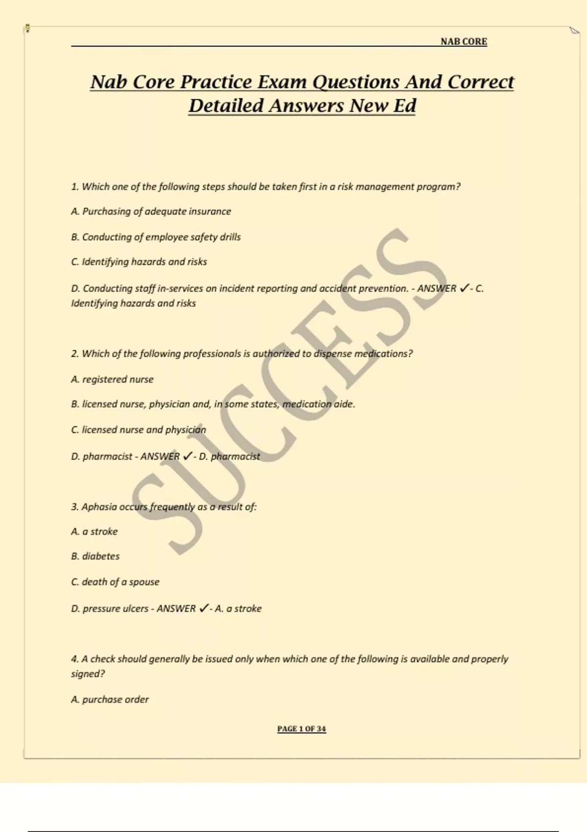Nab Core Practice Exam Questions And Correct Detailed Answers New Ed