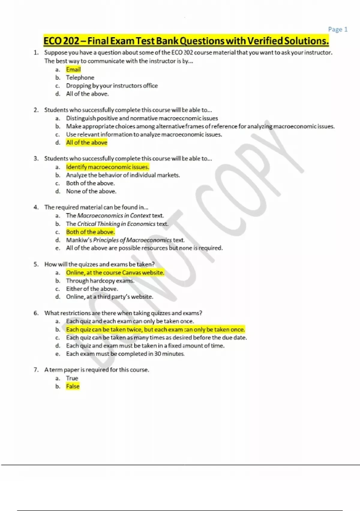ECO 202 – Final Exam Test Bank Questions with Verified Solutions.