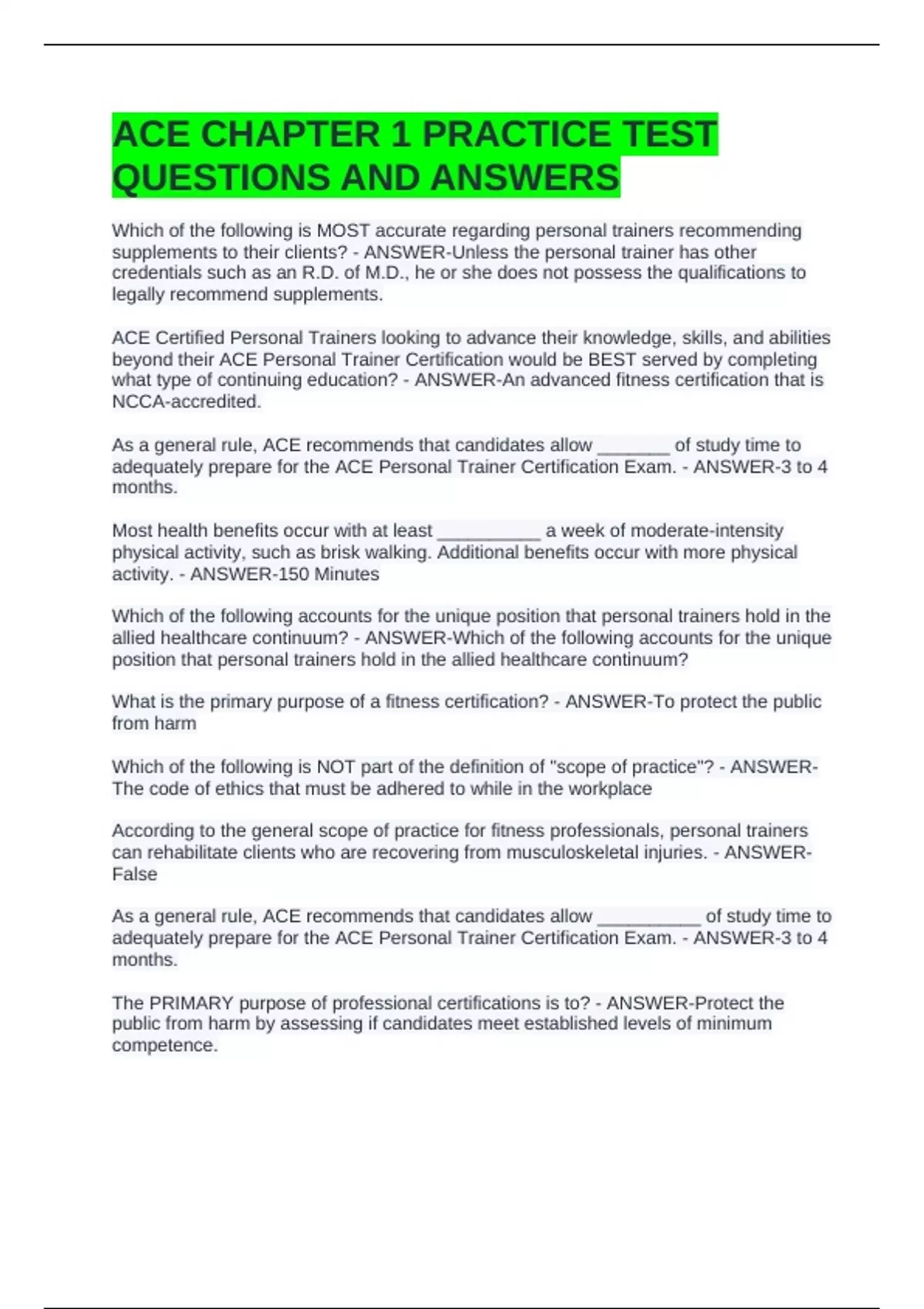 ACE CHAPTER 1 PRACTICE TEST QUESTIONS AND ANSWERS
