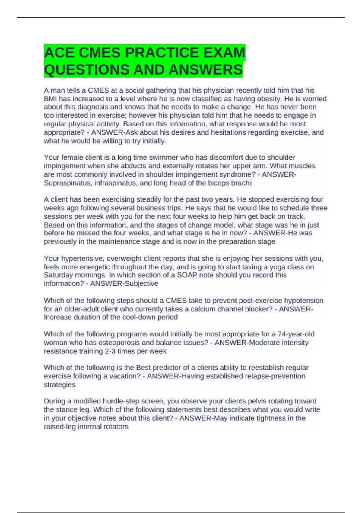 ACE CMES PRACTICE EXAM QUESTIONS AND ANSWERS