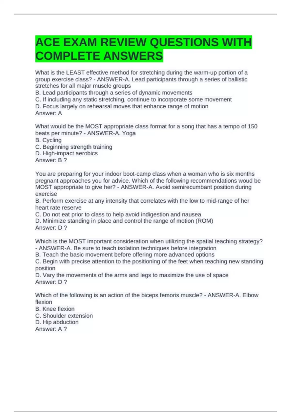 ACE EXAM REVIEW QUESTIONS WITH