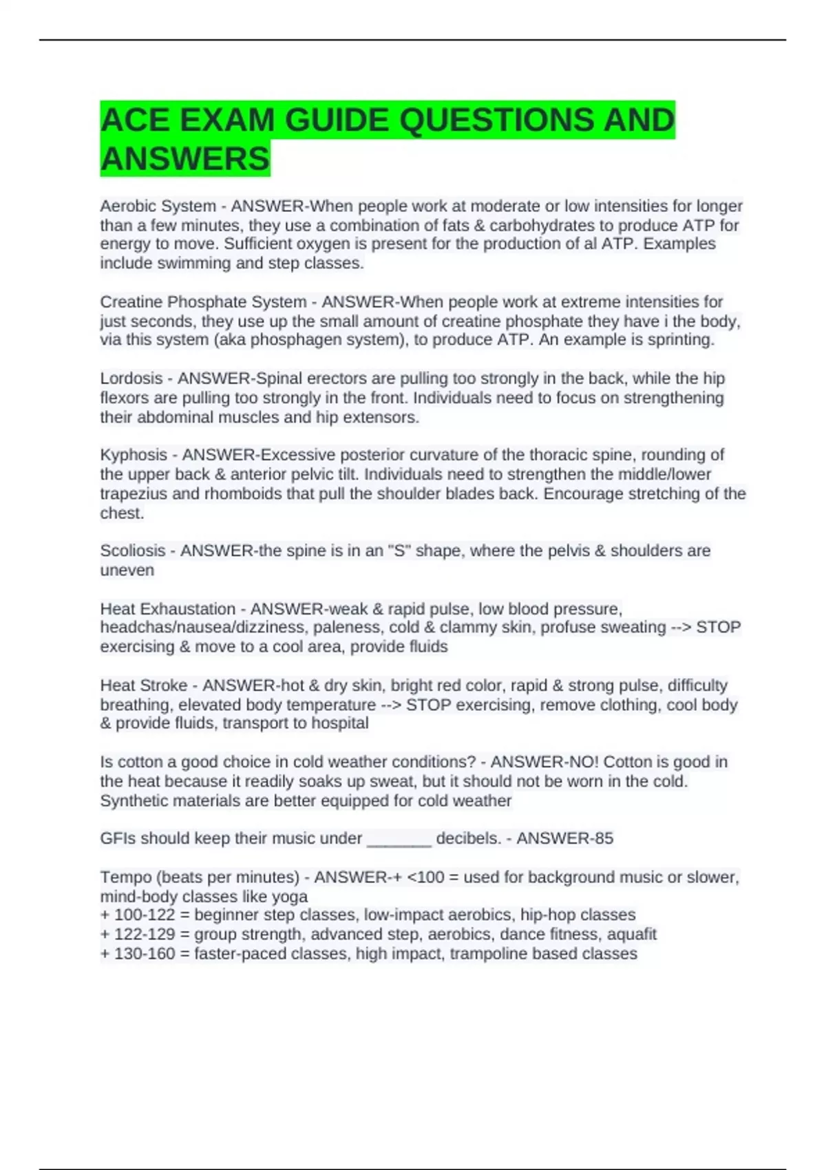 ACE EXAM GUIDE QUESTIONS AND