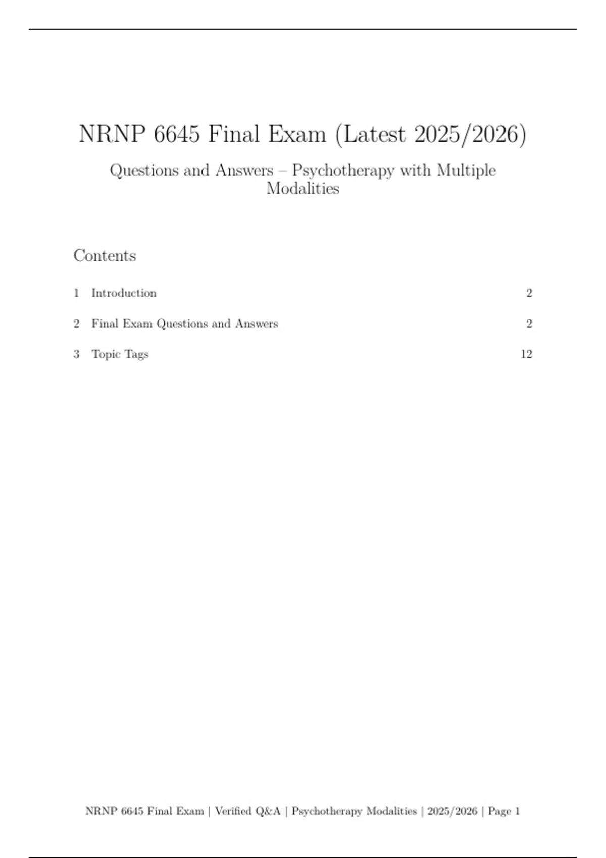 NRNP 6645 Final Exam | Verified Q&A | Psychotherapy Modalities | 2025/2026 | Page 1