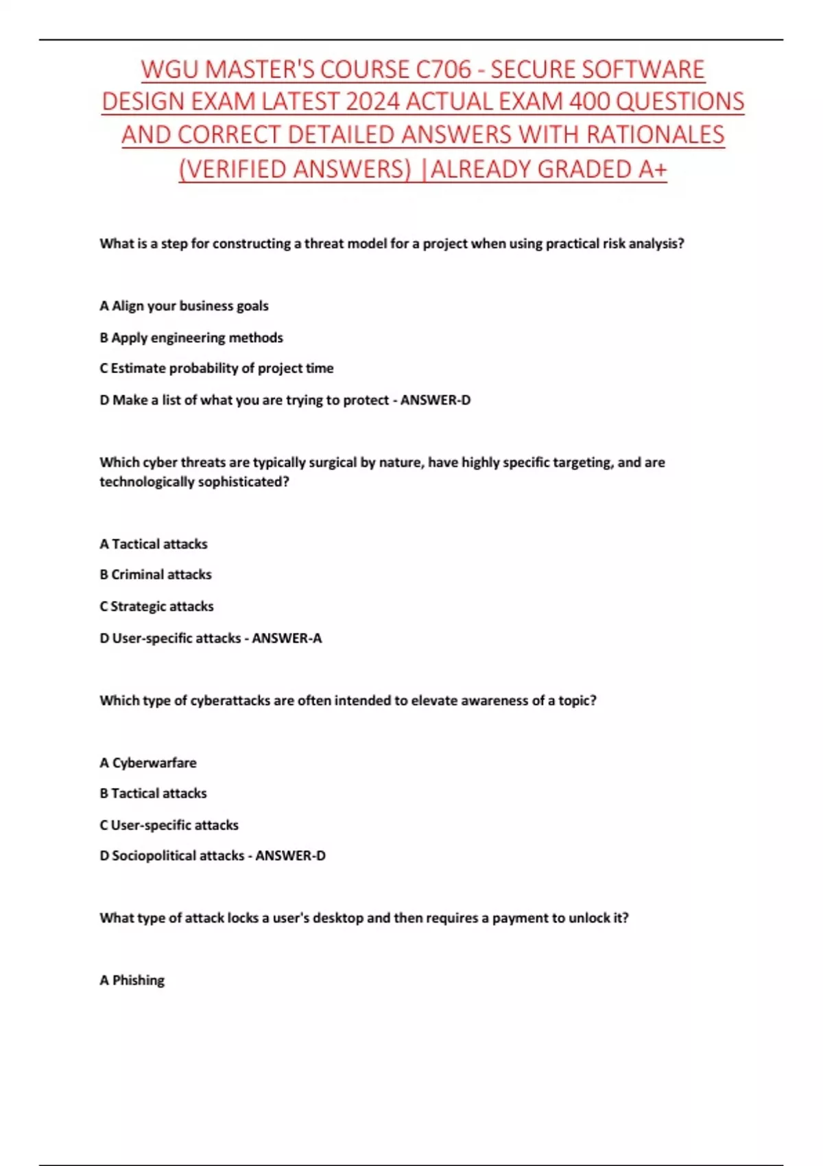 , WGU MASTER'S COURSE C706 - SECURE SOFTWARE
