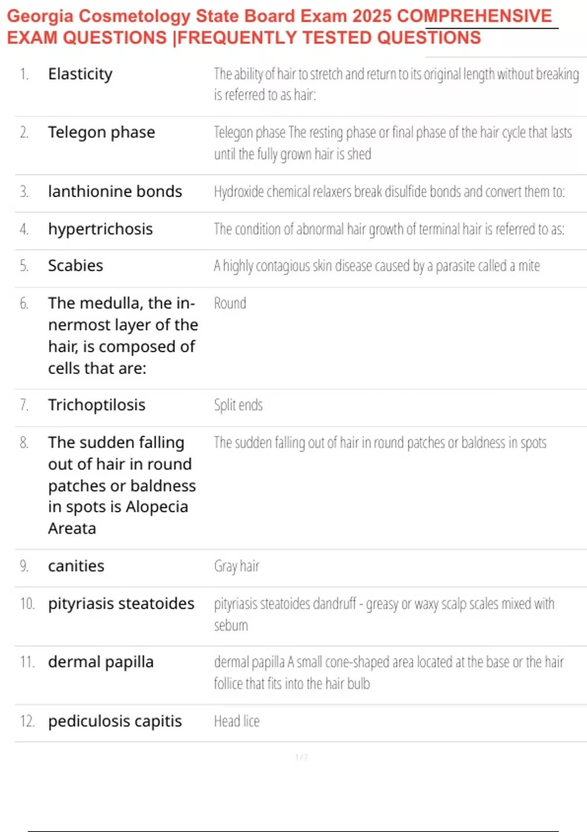 Georgia Cosmetology State Board Exam 2025 COMPREHENSIVE