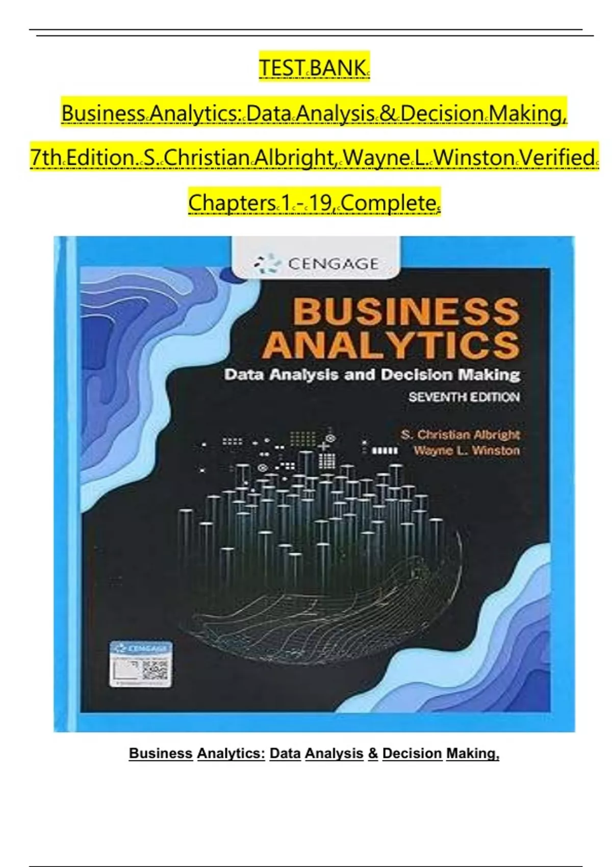 Test Bank - Business analytics data analysis decision making 6th edition by S Christian Albright and Winston Chapters 1-20 Covered