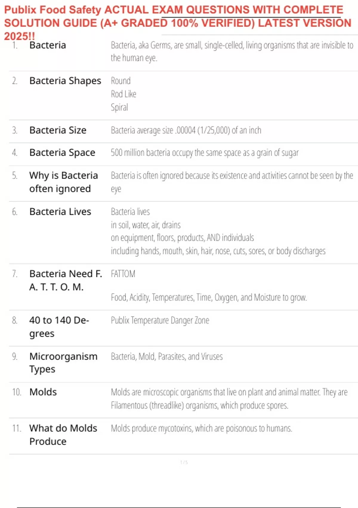 Publix Food Safety ACTUAL EXAM QUESTIONS WITH COMPLETE