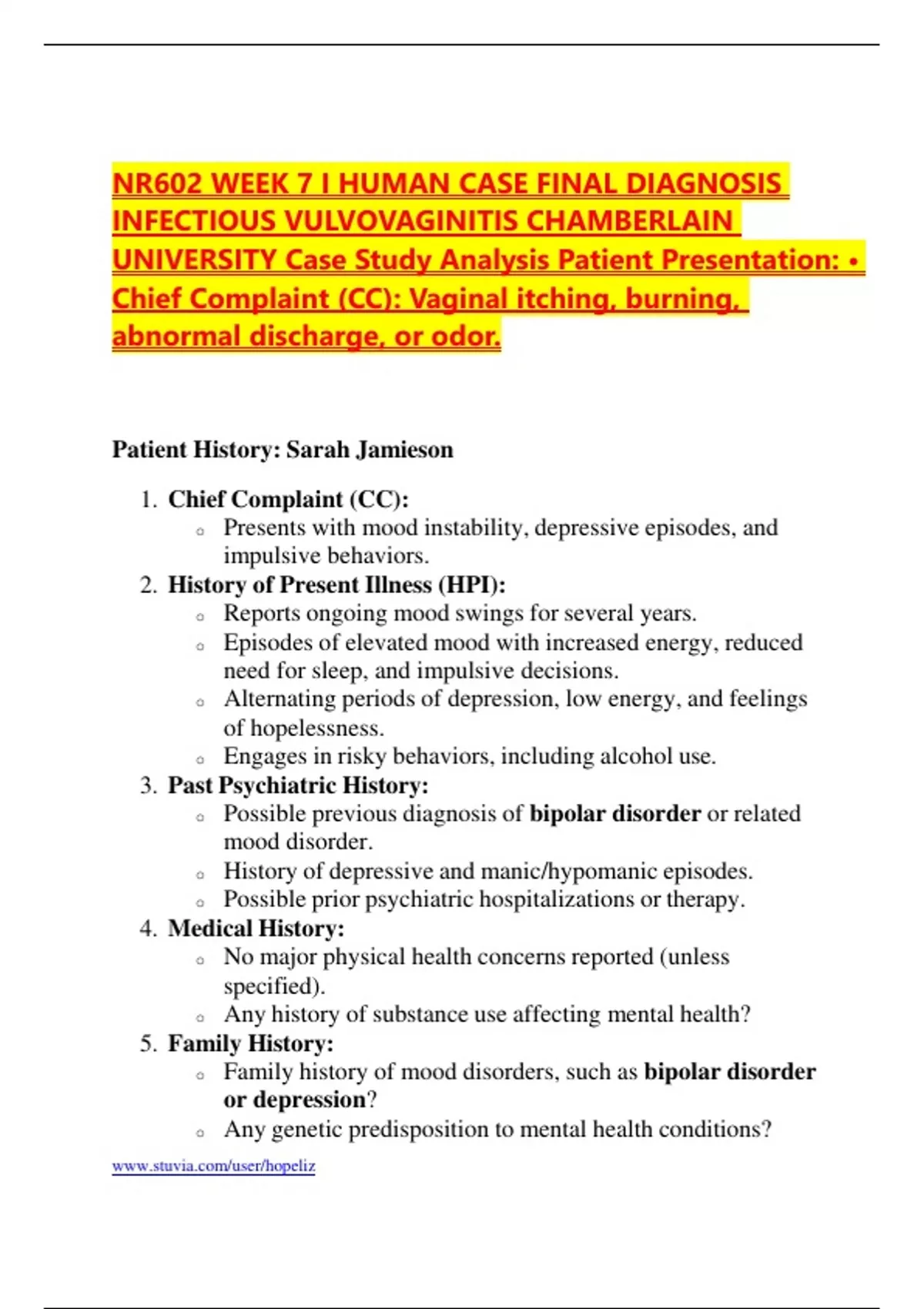NR602 WEEK 7 I HUMAN CASE FINAL DIAGNOSIS