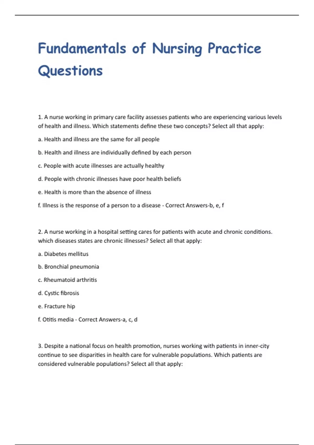Get real nursing exam questions with certified answers. Perfect for quick revision and exam prep. Clear, accurate and easy to use. Package deals also available with 50 % offer. Study smart, pass fast!