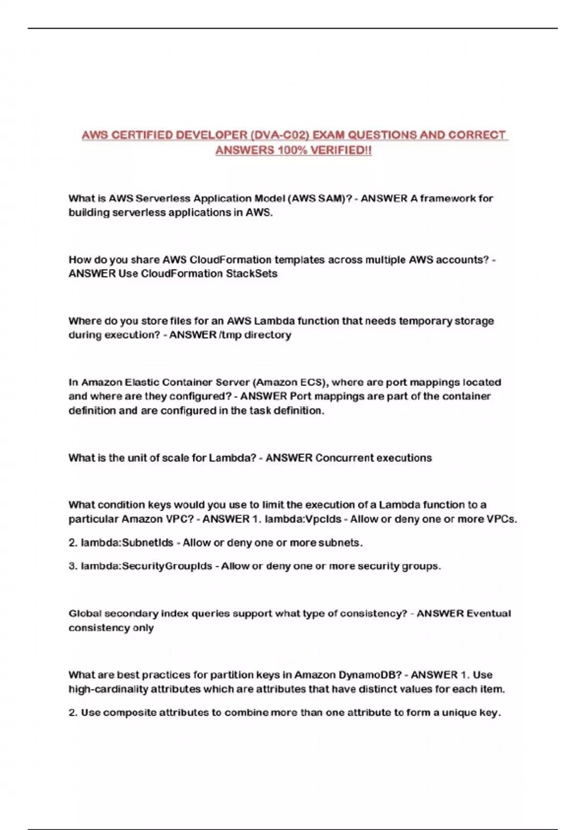 AWS CERTIFIED DEVELOPER (DVA-C02) EXAM QUESTIONS AND CORRECT ANSWERS 100% VERIFIED!!...