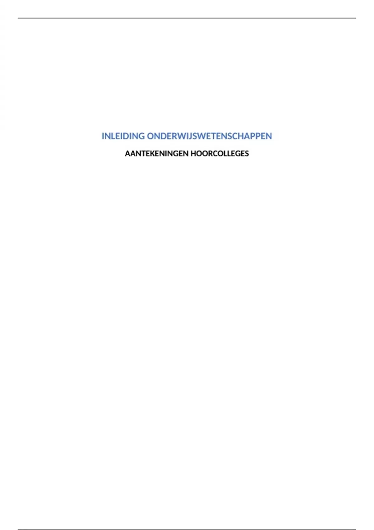 Aantekeningen hoorcolleges Inleiding Onderwijswetenschappen