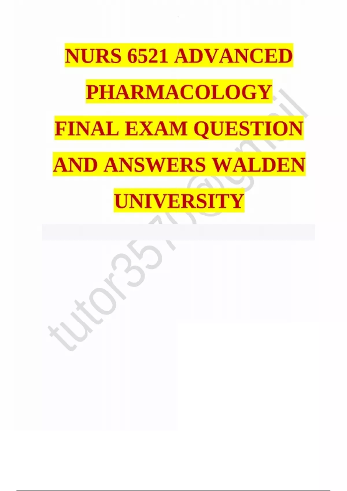 NURS 6521 ADVANCED PHARMACOLOGY FINAL EXAM QUESTION AND ANSWERS WALDEN UNIVERSITY