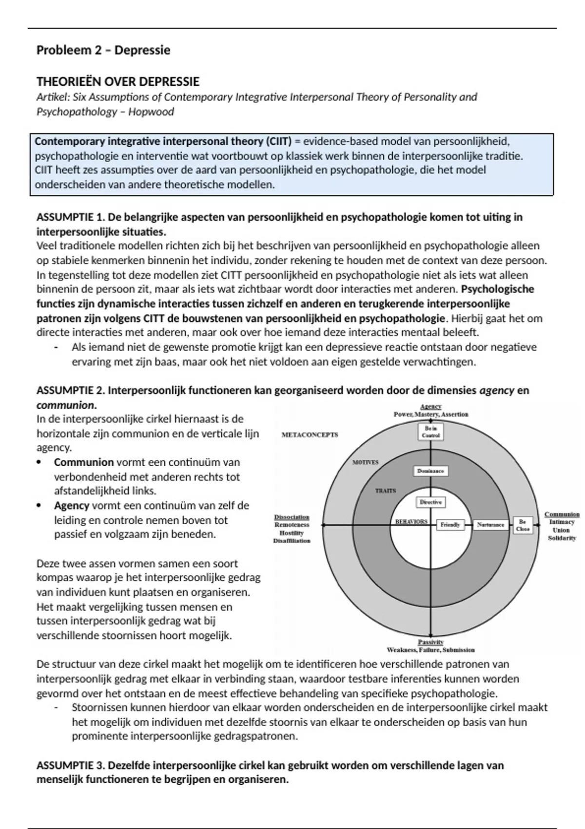 ASSUMPTIE 2. Interpersoonlijk functioneren kan georganiseerd worden door de dimensies agency en
