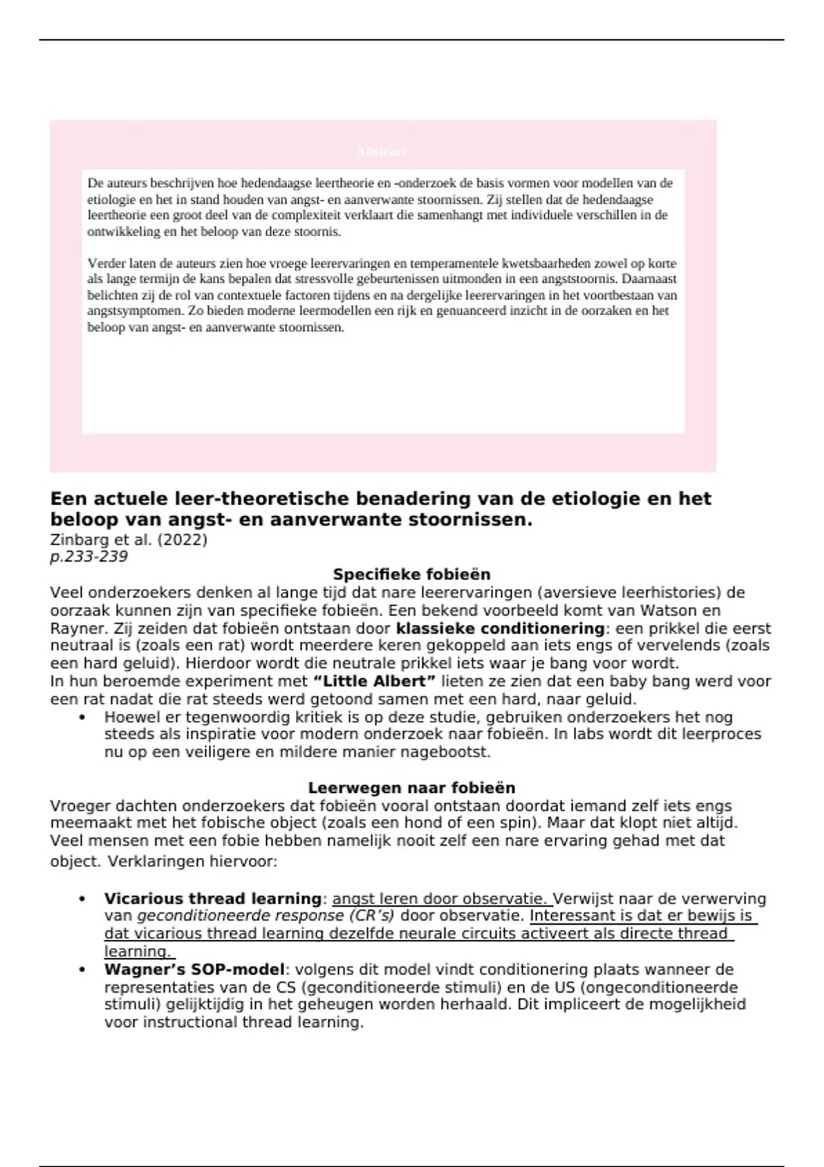 oorzaak kunnen zijn van specifieke fobieën. Een bekend voorbeeld komt van Watson en