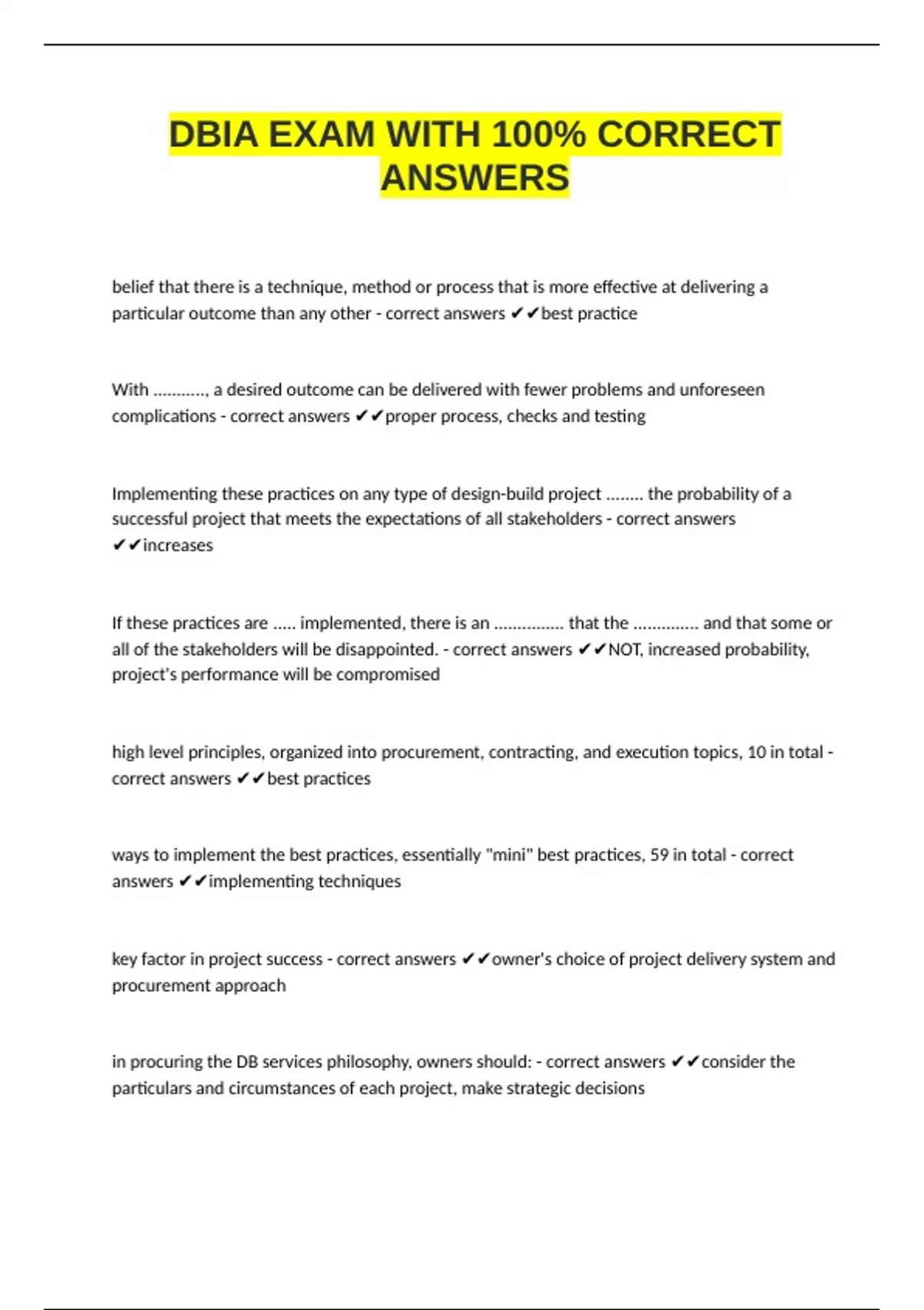 DBIA EXAM WITH 100% CORRECT