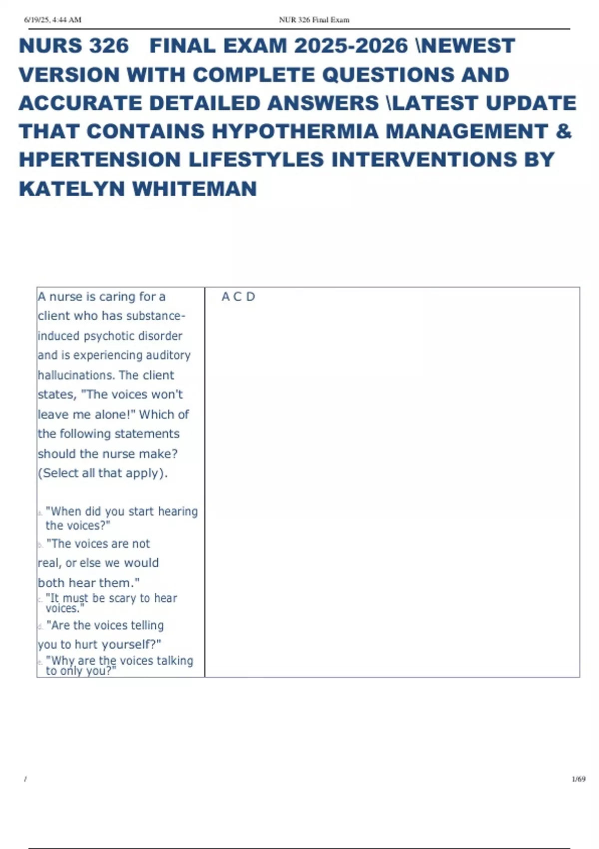 NURS 326 FINAL EXAM 2025-2026 \NEWEST