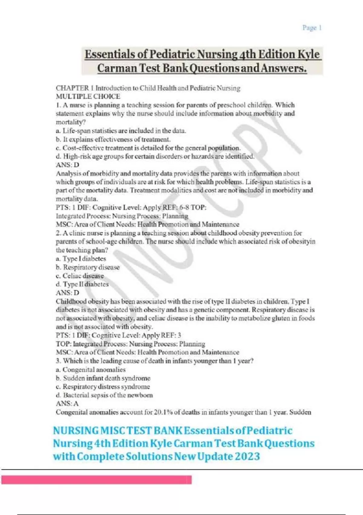 Essentials of Pediatric Nursing 4th Edition Kyle Carman Test Bank Questions and Answers.Essentials of Pediatric Nursing 4th Edition Kyle Carman Test Bank Questions and Answers.