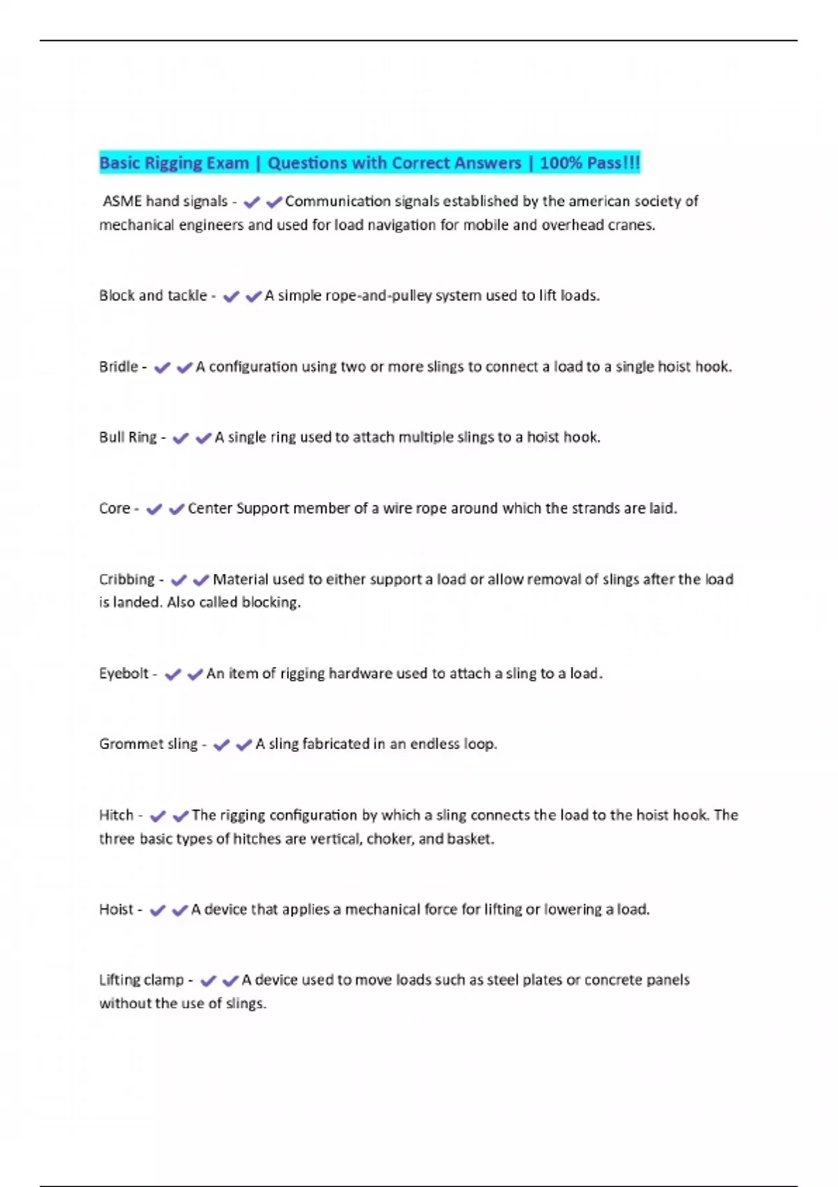 Basic Rigging Exam | Questions with Correct Answers | 100% Pass!!!
