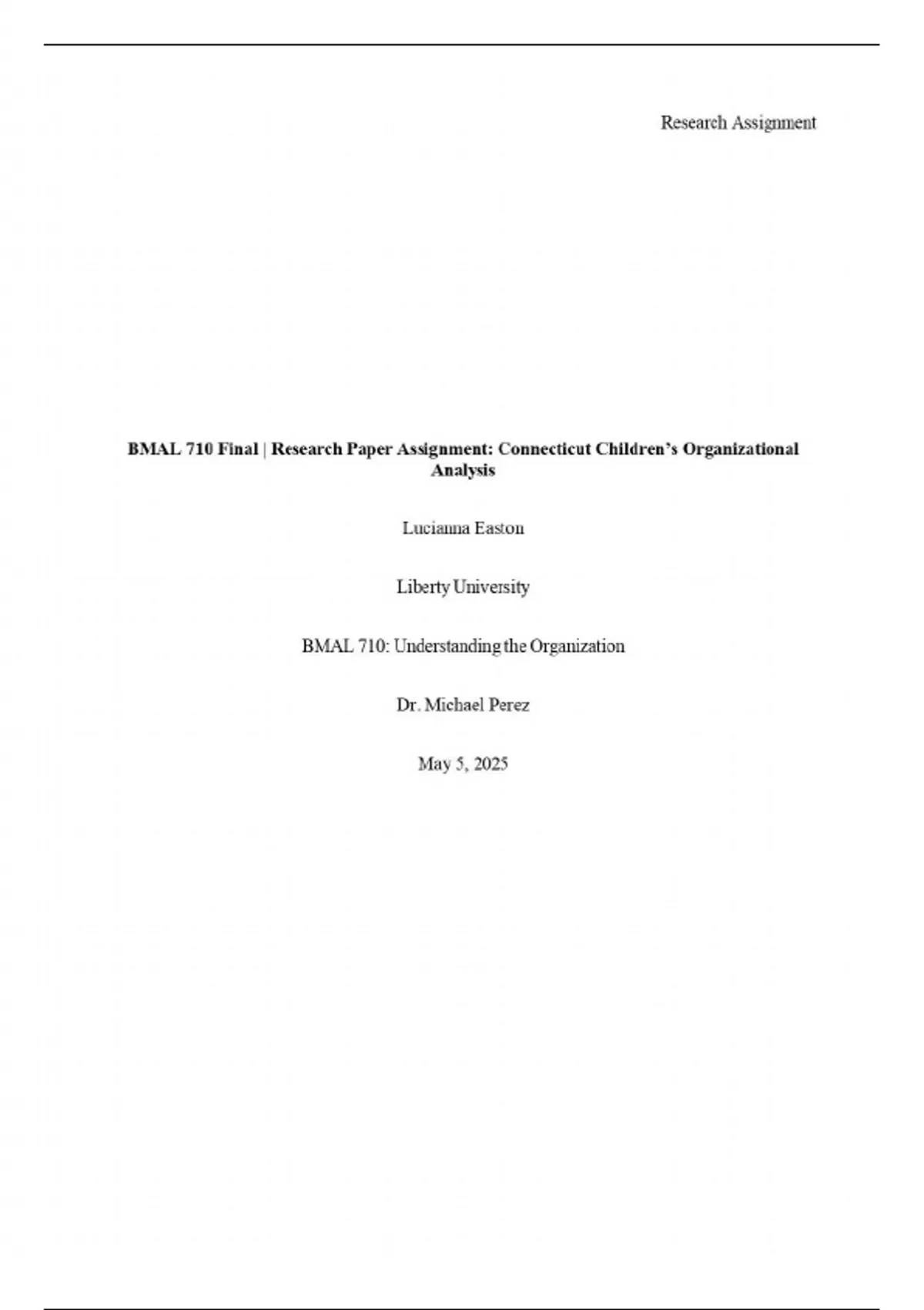 BMAL 710 Final | Research Paper Assignment: Connecticut Children’s Organizational Analysis | 2025 Update with complete solutions.