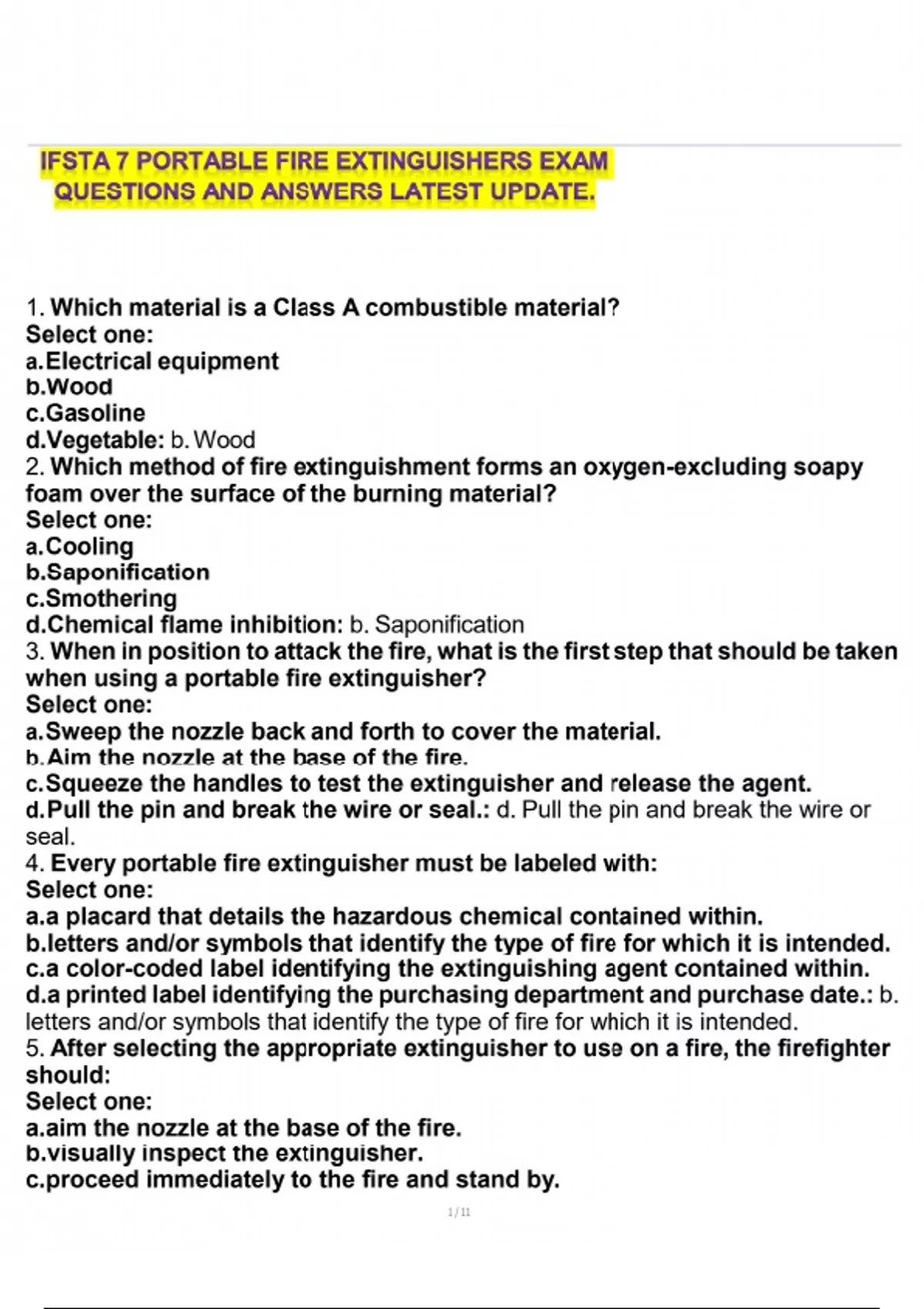 IFSTA 7 PORTABLE FIRE EXTINGUISHERS EXAM QUESTIONS AND ANSWERS LATEST UPDATE.