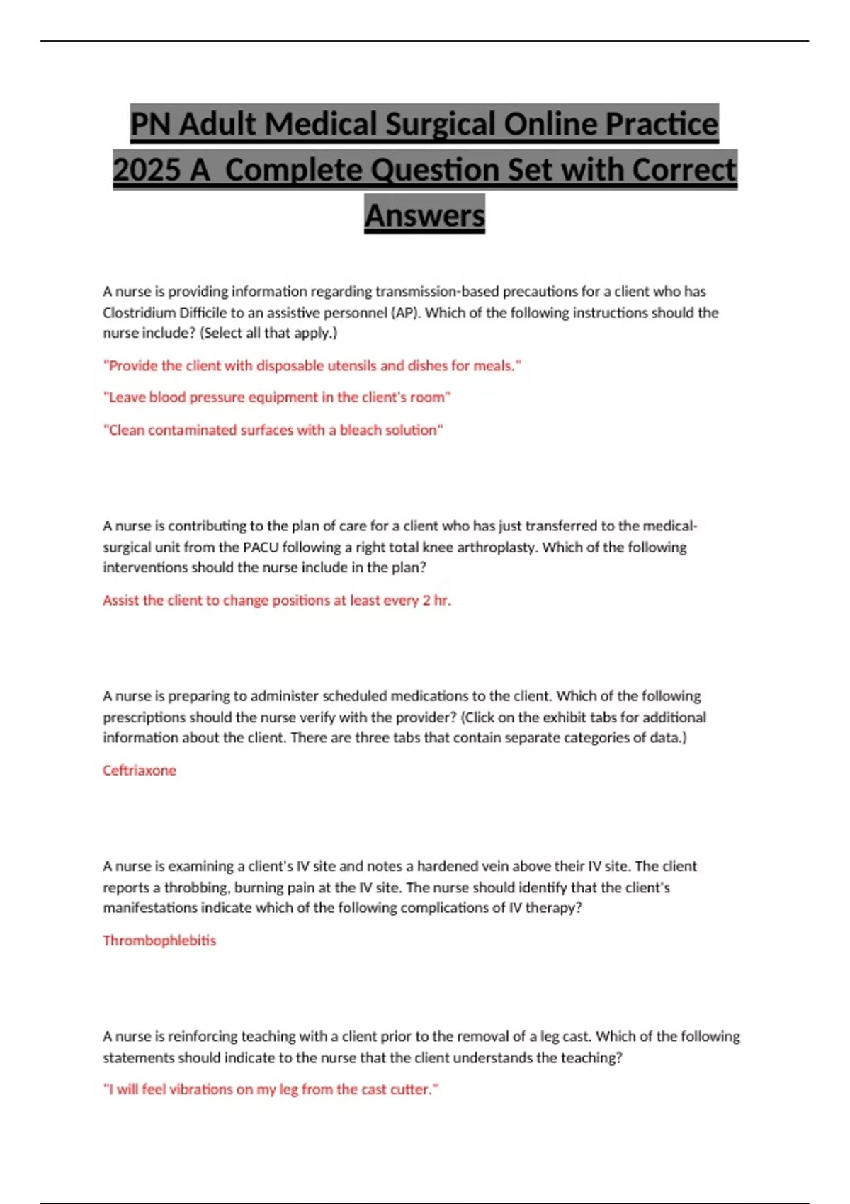 PN Adult Medical Surgical Online Practice
