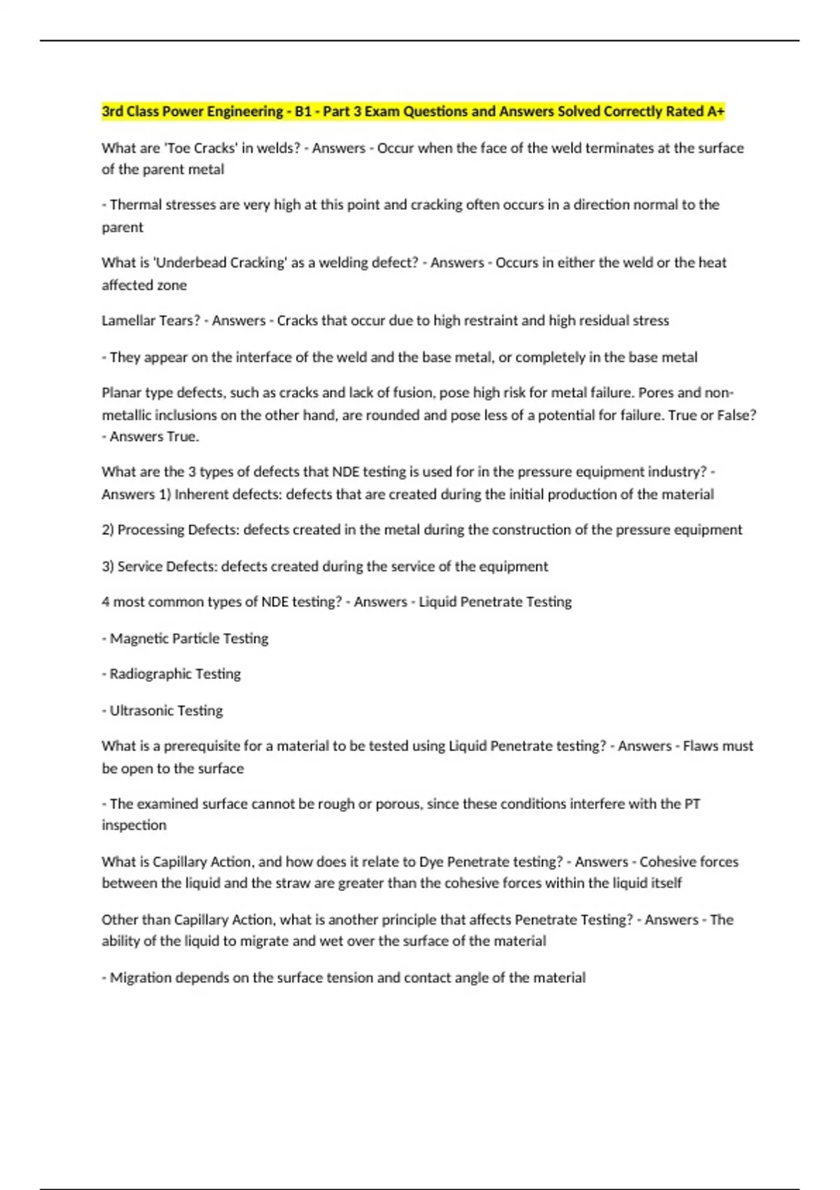 Magnetic Particle Testing? - Answers - NDE technique that detects surface or sub-surface flaws