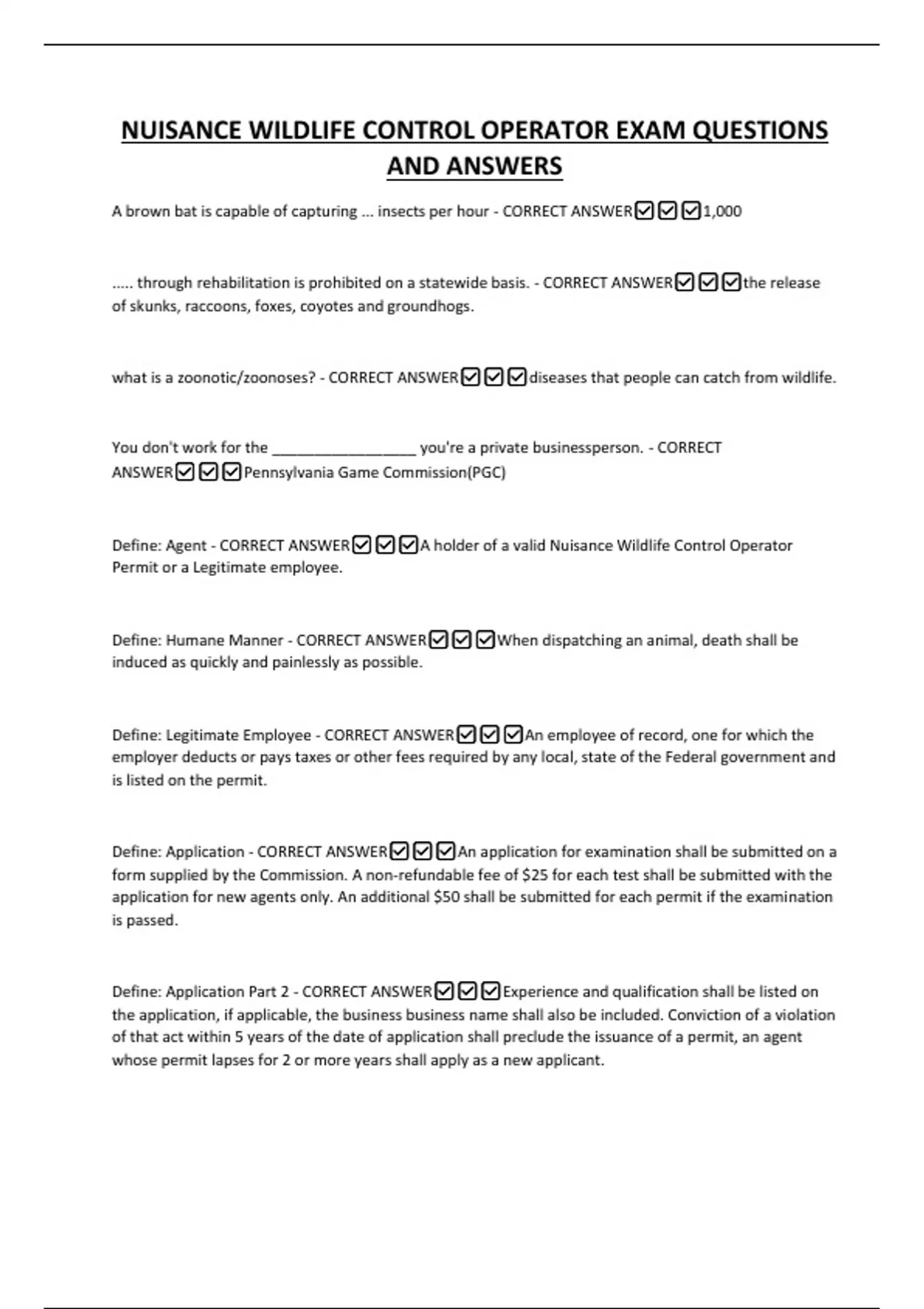 Nuisance wildlife should be captured..: - CORRECT ANSWER✅✅✅alive and within 24 hours be