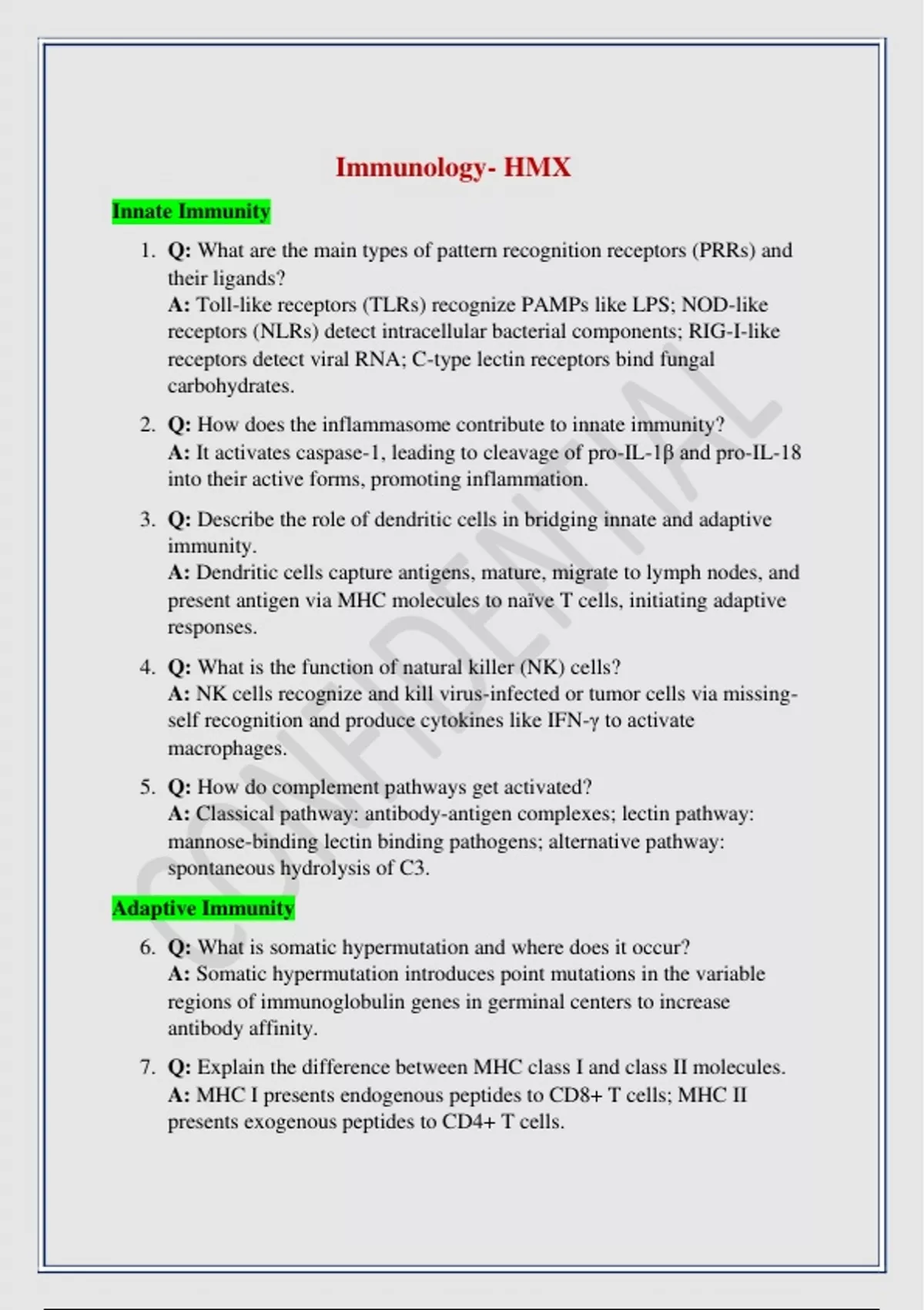 7. Q: Explain the difference between MHC class I and class II molecules.