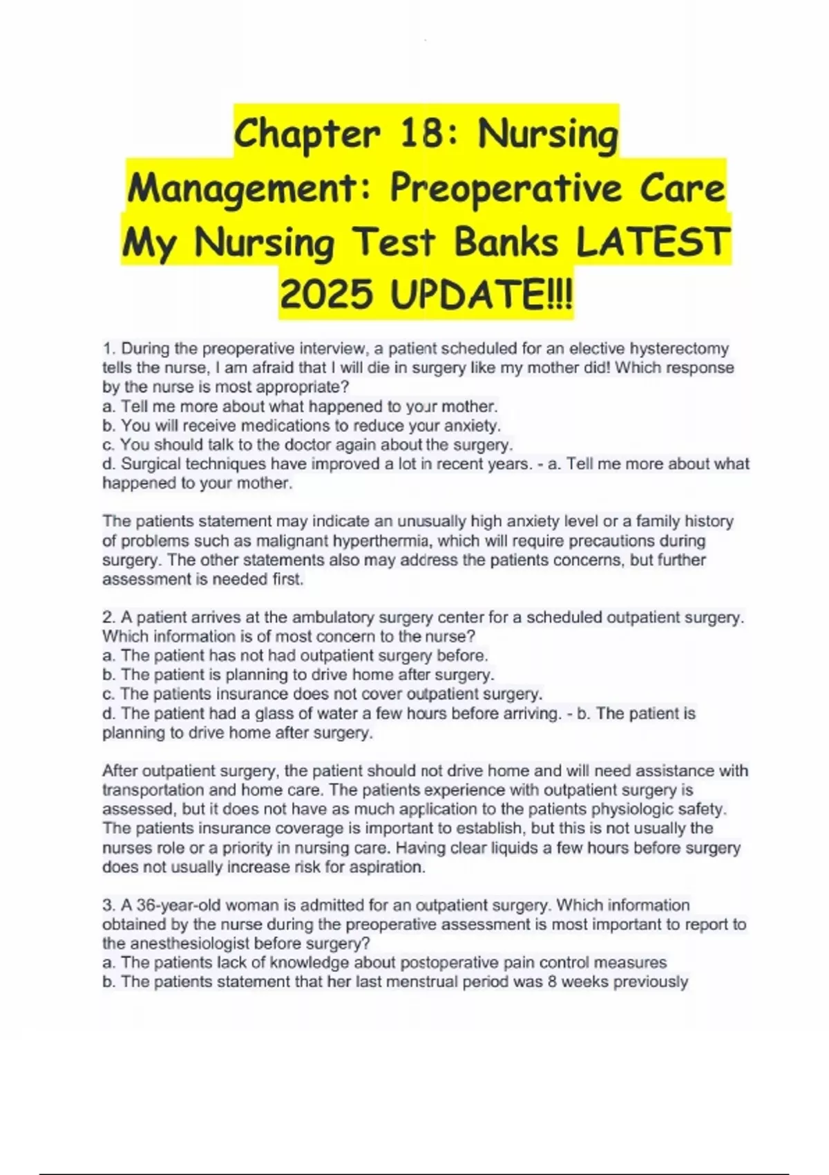 Chapter 18- Nursing Management- Preoperative Care My Nursing Test Banks LATEST 2025 UPDATE!!!.