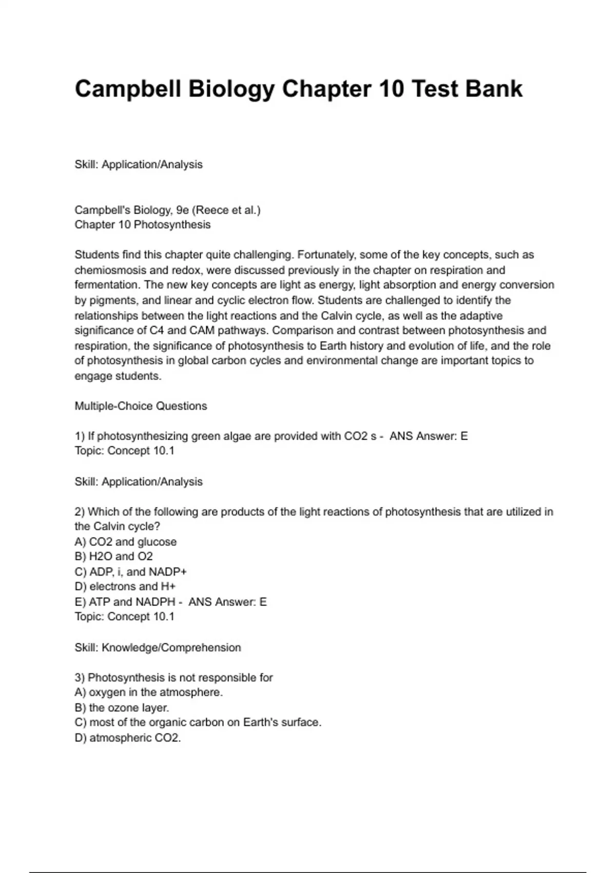 1) If photosynthesizing green algae are provided with CO2 s - ANS Answer: E