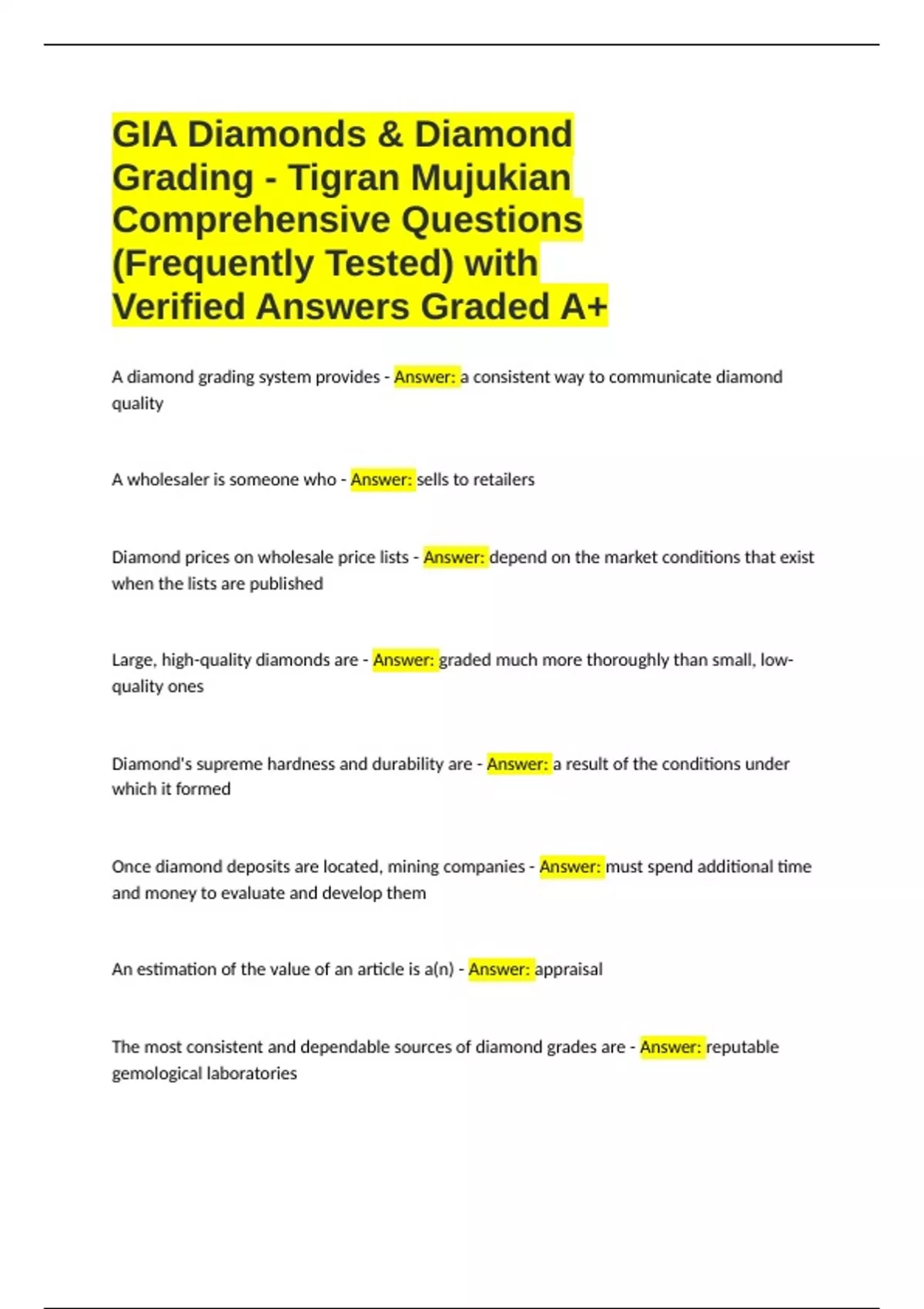 Verified Answers Graded A+