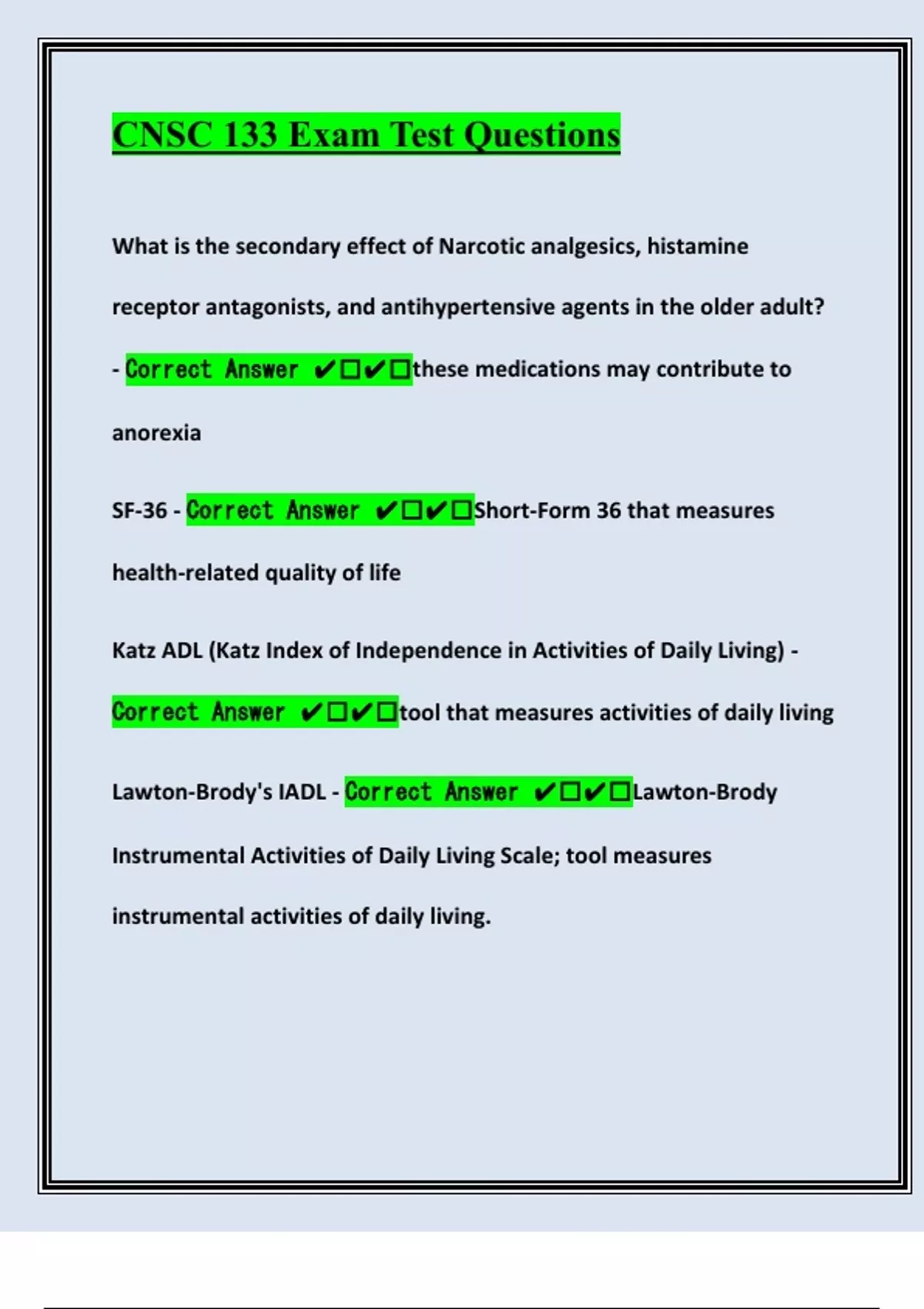 Correct Answer ✔️✔️tool that measures activities of daily living
