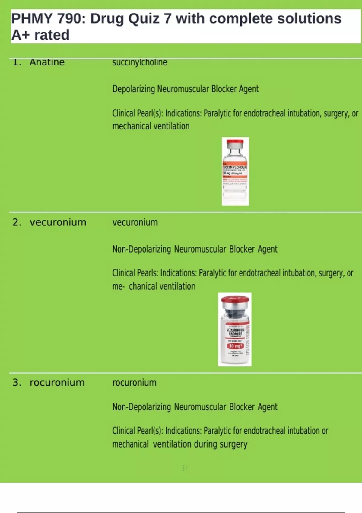 , PHMY 790: Drug Quiz 7 with complete solutions