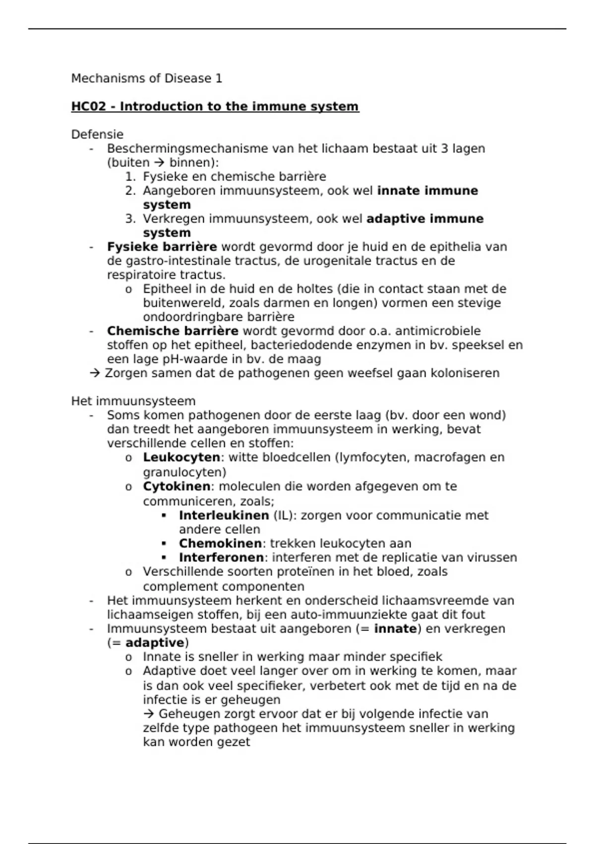 - Immuunsysteem bestaat uit aangeboren (= innate) en verkregen