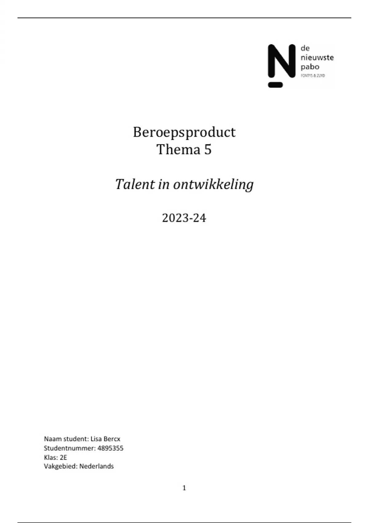 Beroepsproduct Nederlands thema 5 Pabo