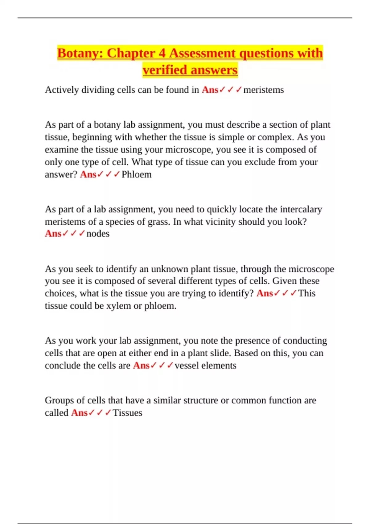 conclude the cells are Ans✓✓✓vessel elements