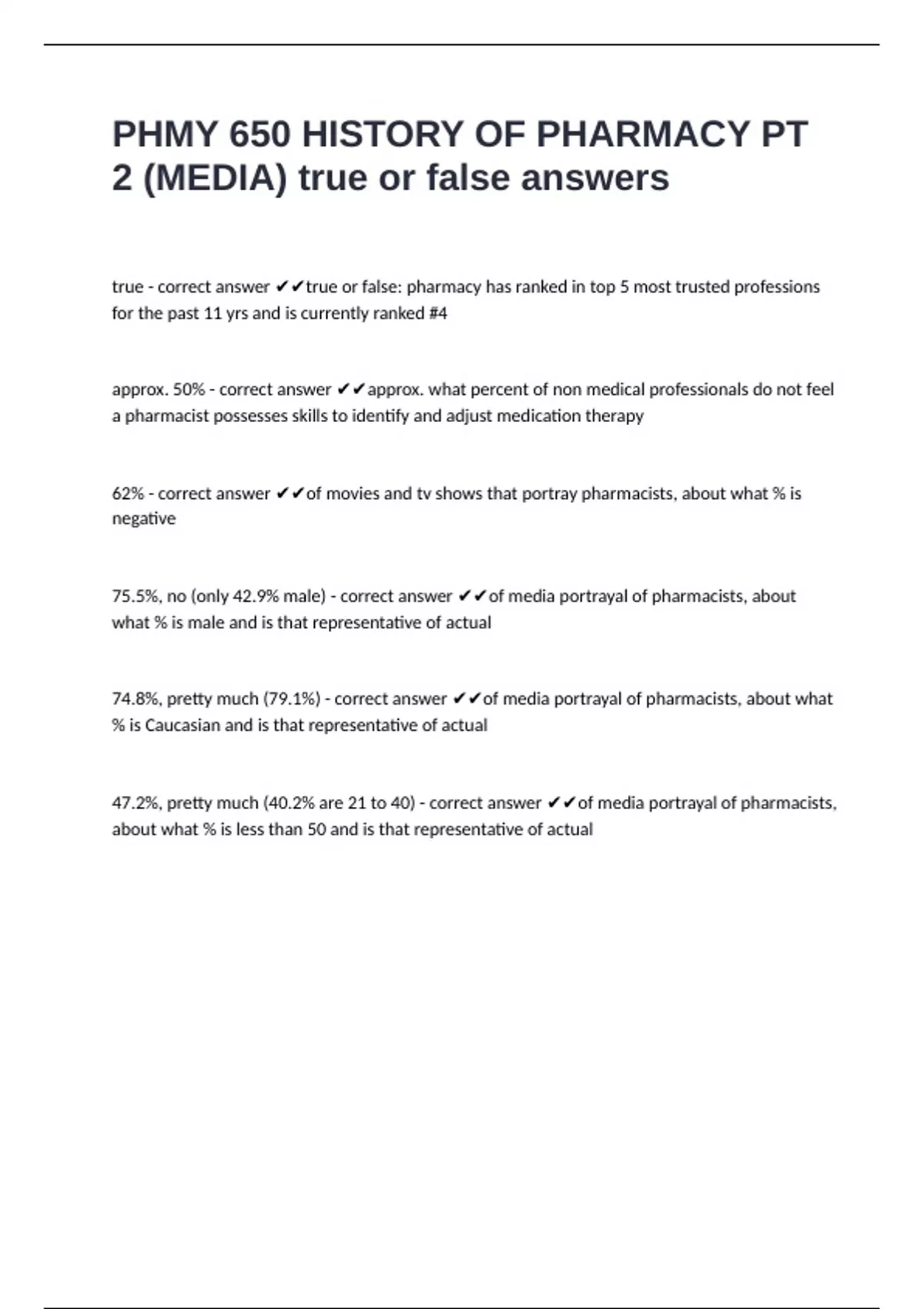 62% - correct answer ✔✔of movies and tv shows that portray pharmacists, about what % is