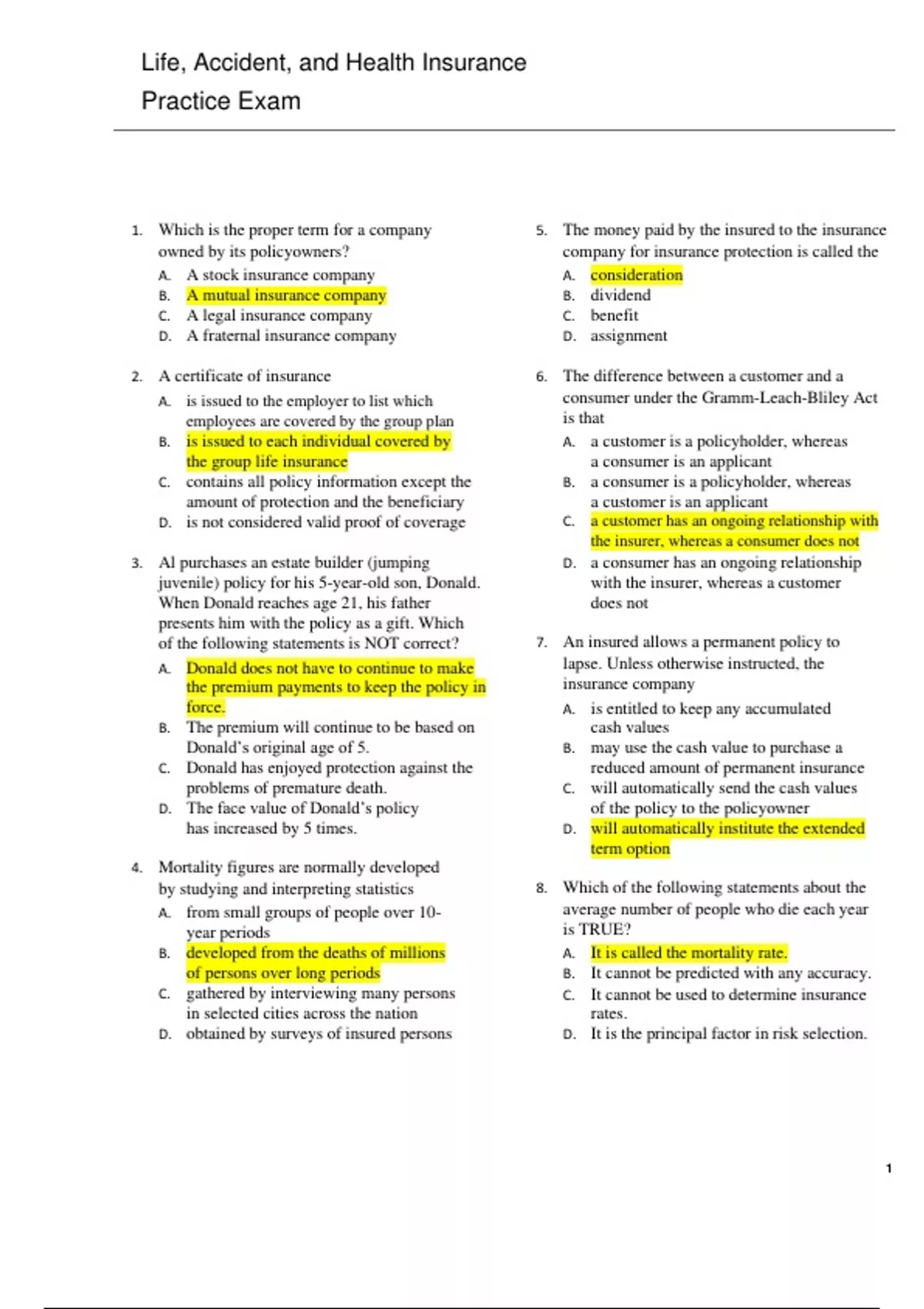,2 Life, Accident, and Health Insurance Practice Exam senior executives. This benefit is not available to