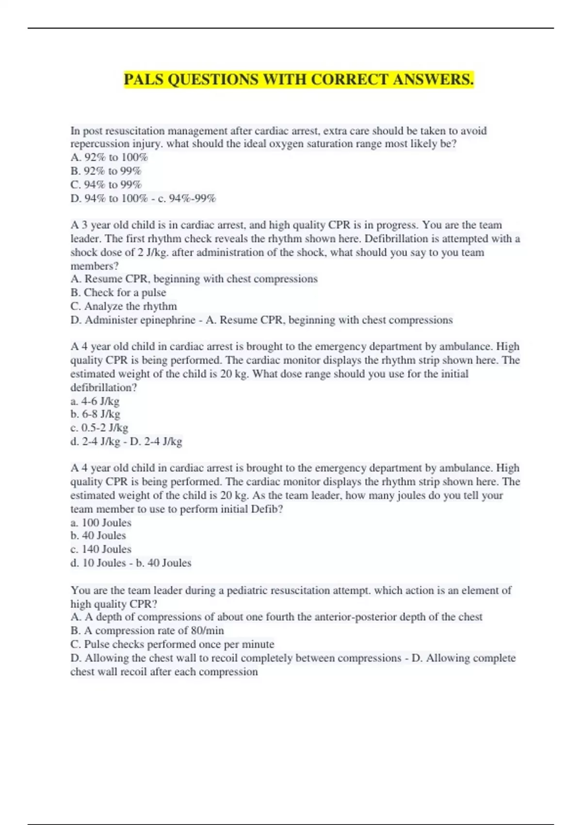 PALS QUESTIONS WITH CORRECT ANSWERS.