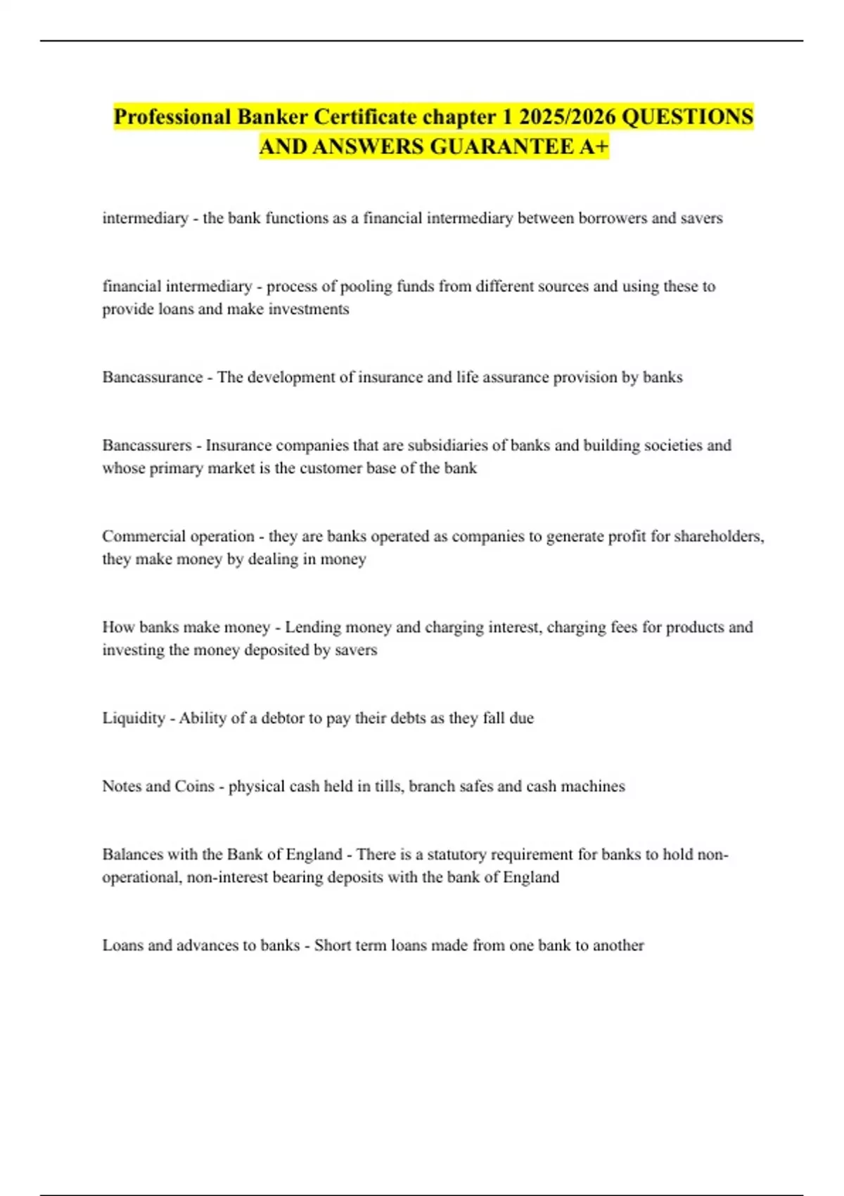 Professional Banker Certificate chapter 1 2025/2026 QUESTIONS