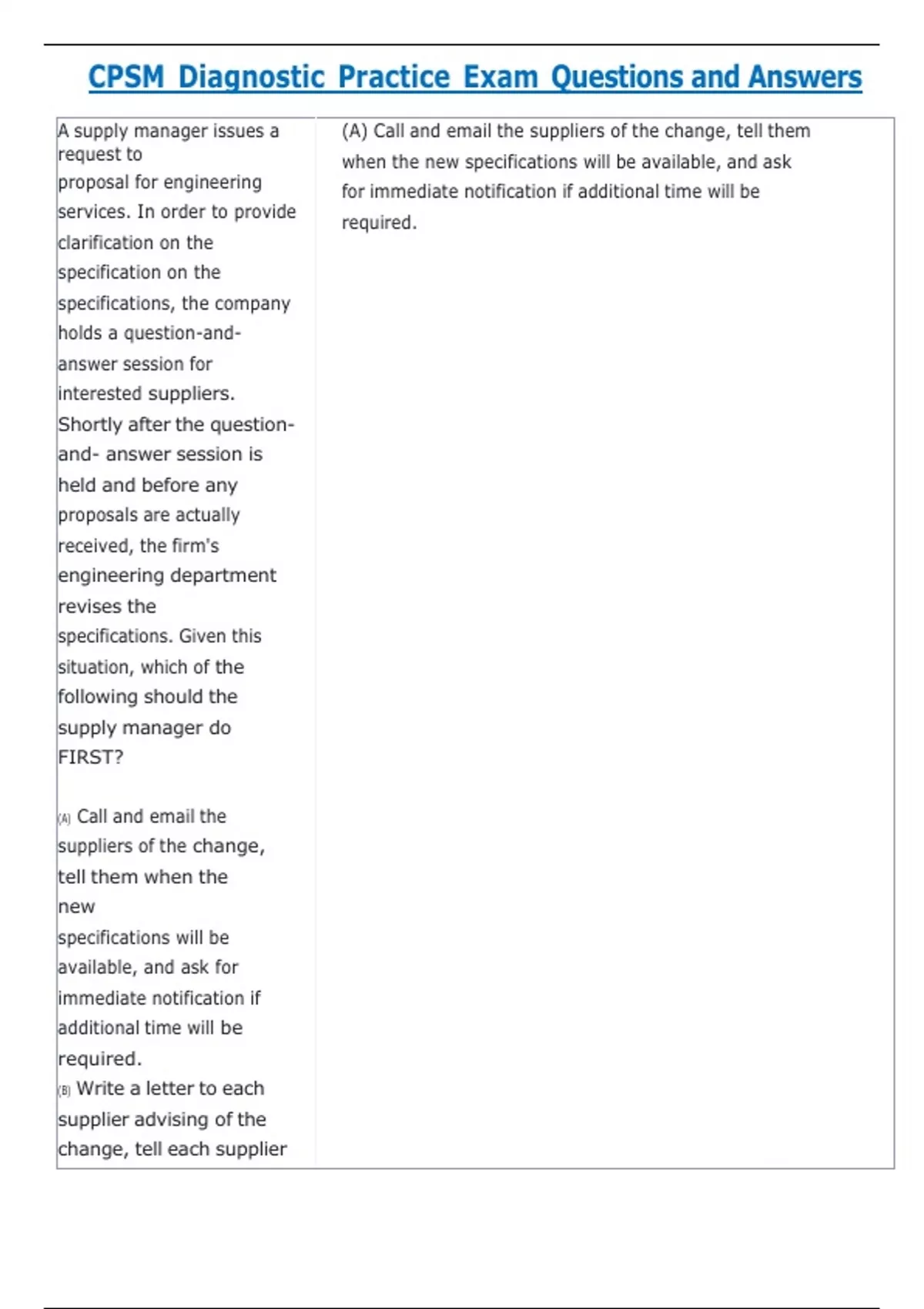 A supply manager issues a (A) Call and email the suppliers of the change, tell them